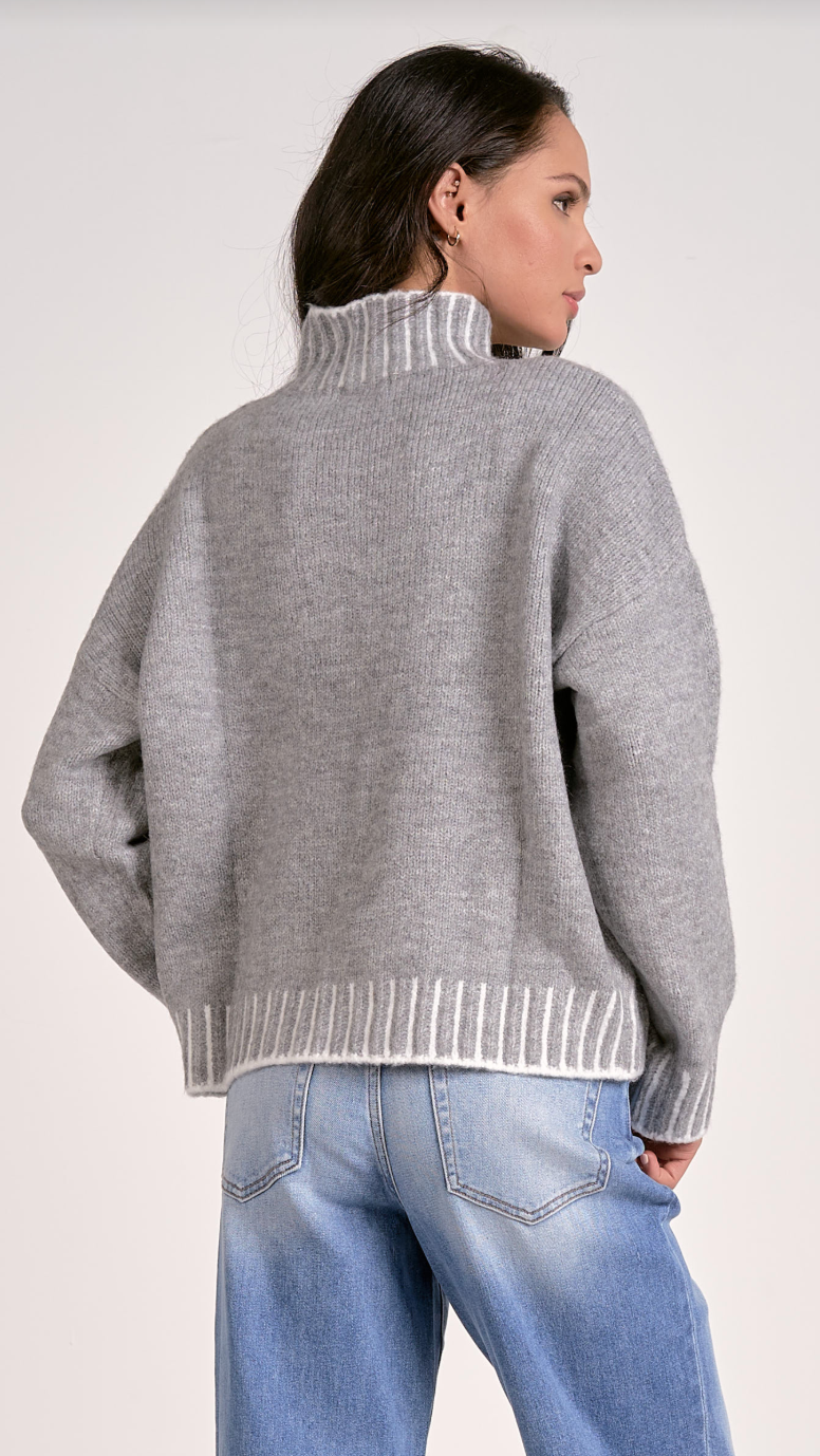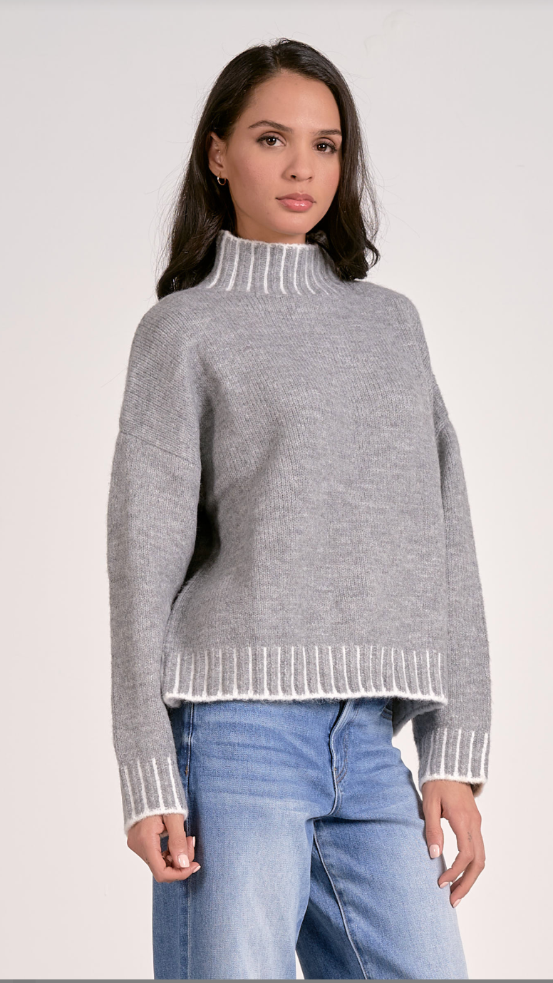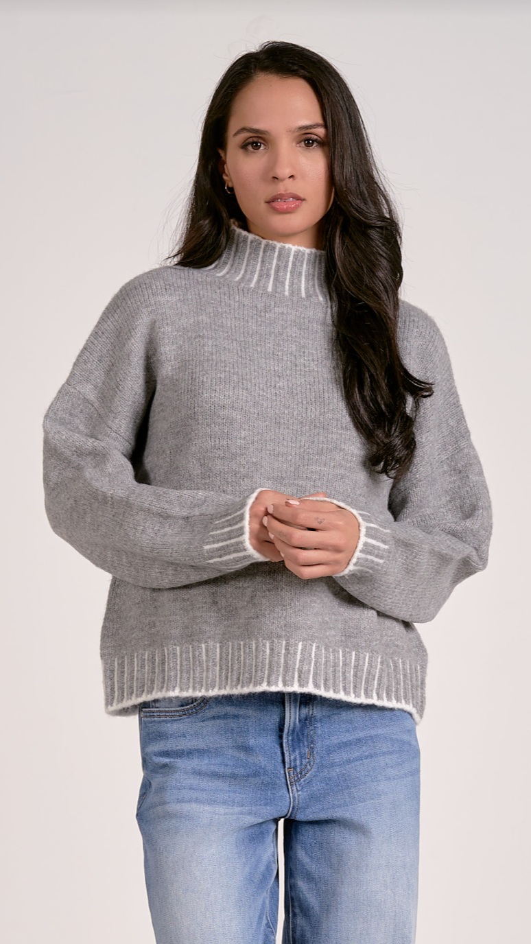 The Elan Folklore Sweater offers a refined take on the classic basic sweater with its crisp white detailing along the neckline and cuffs. Crafted for comfort, its lightweight, soft fabric ensures ease of wear while the elegant turtleneck design makes it versatile enough to dress up or down. This sweater seamlessly blends style and practicality, making it a reliable staple for any wardrobe.